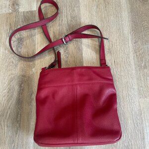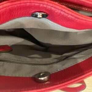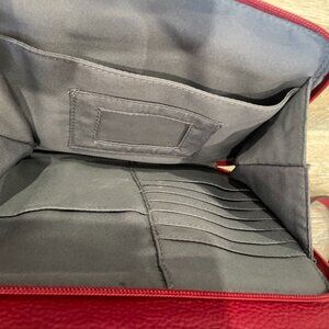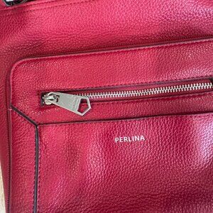 Perlina Leather Bag New York. Deep Cranberry Red.( actual color is darker than pics show due to poor lighting.) Shoulder or Cross Body adjustable 45+ inches.