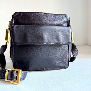 Perlina Vintage Dark Chocolate Brown Square Leather Small Everyday Crossbody.
