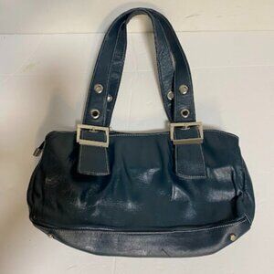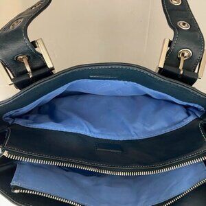 Relevant Keywords: Perlina bag, navy leather tote, buckle shoulder bag, genuine leather purse, structured handbag, everyday tote, designer handbag