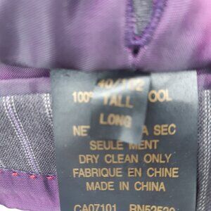 Perry Ellis 2 Piece Suit SZ 40T x 34 Grey w/Mauve & Grey Pinstripes 100% Wool