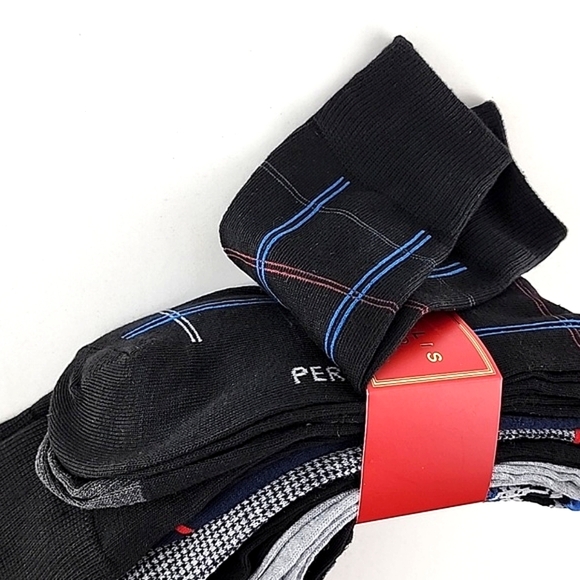 New with tags, Perry Ellis 6 Pack Men's Portfolio Socks Plaid Dalmatians Shoe Size 7-12