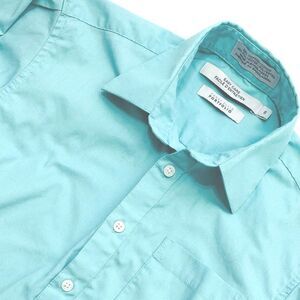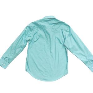 These is a really nice light aqua green button-down dress shirt. Easy care, so easy on the wrinkles and ironing! Get this in your bundle with some dress pants or jeans and suspenders for a super styled closet discount. EUC.