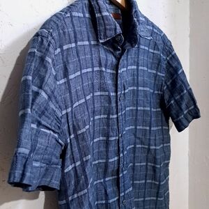 Perry Ellis | Blue Plaid Men's button up collared Shirt