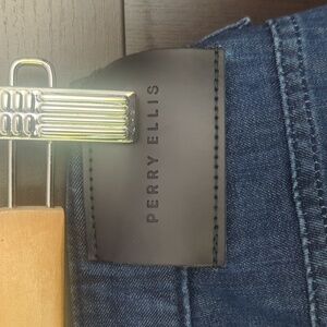 These Perry Ellis jeans feature a timeless straight-leg cut in a rich blue hue, offering a versatile and classic look. Jeans are made of a thin denim that is light and airy.