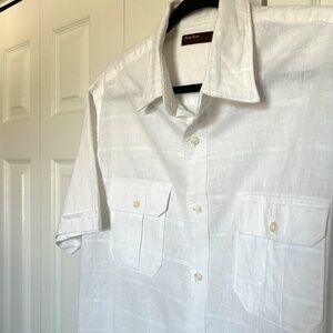 Perry Ellis Men’s Classic White Short Sleeve Shirt in Linen/Cotton Blend Size L