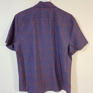 Labelled as Bittersweet shirt with blue and red leaf print.