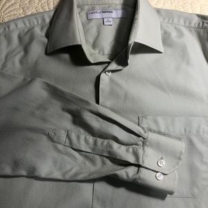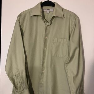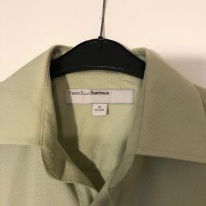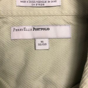 Perry Ellis Portfolio light green men's 100% cotton dress shirt, size 15, 32/33. Classic fit. Diagonal tone-on-tone texture.