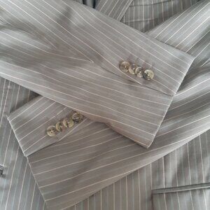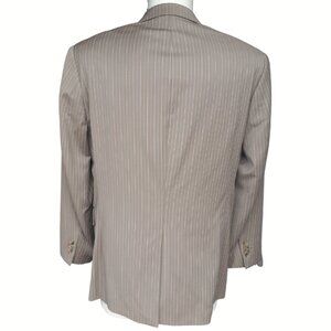 Perry Ellis SZ 38S Beige w/ Aqua & White Pinstripe Men's Sport Coat Blazer