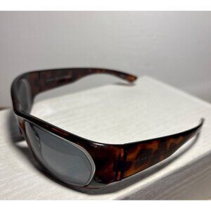 These sunglasses offer a stylish yet functional design, featuring a timeless tortoise shell frame and dark lenses, ideal for reducing glare.
