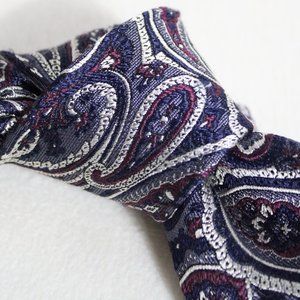Perry Ellis Tie Silk -Navy, Burgundy, Grey and White Paisley ⚡️BUY 3 for $55⚡️