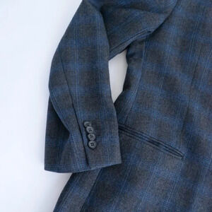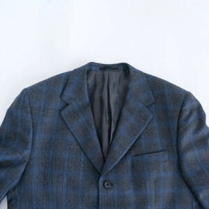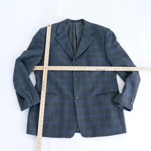 Perry Ellis Vintage Grey Blue Checker Pattern Wool Three Button Blazer - Size 44