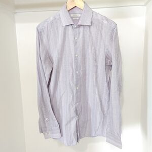 Perry Ellis | purple & white gingham check mens dress shirt / portfolio , slim fit . mens size 15.5 (34/35) . 60% cotton 40% polyester