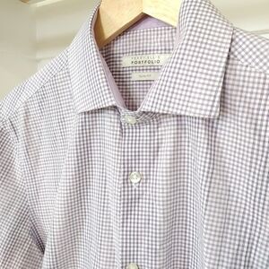 Perry Ellis | purple & white gingham check mens dress shirt / portfolio