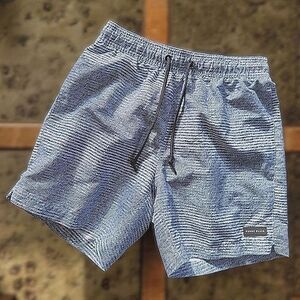Perry Ellis Printed Swim Shorts abstract blue on white stripe
