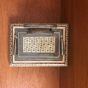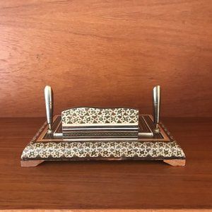 Persian Handmade Wooden Inlaid Khatam Kari Marquetry Enameled Pens and Card Hold