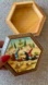 Beautiful hexagonal box featuring a colorful equestrian scene. Perfect for storing small items or as a decorative piece.