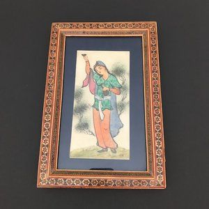 Persian Painting in Inlaid Khatam Micro Mosaic Marquetry Frame