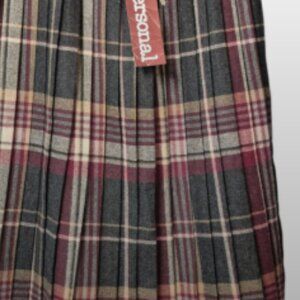 Persona Women's Pleated A-Line Wool Blend Skirt Maroon Charcoal Plaid Size 14