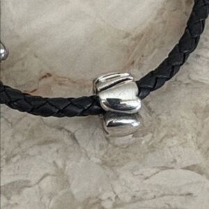 Rare retired Persona Adjustable black braided leather & sterling silver bracelet, plus chunky sterling silver heart charm .