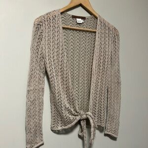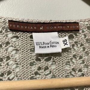 Peruvian Connection Beige Grey Crochet Knit Wrap Sweater made in Peru 100% Pima