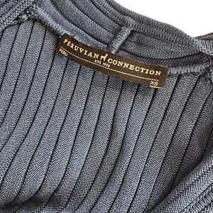 Peruvian Connection Ribbed Geometric Midi Dress Size XS Blue Stretch A-Line