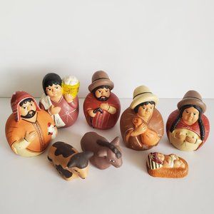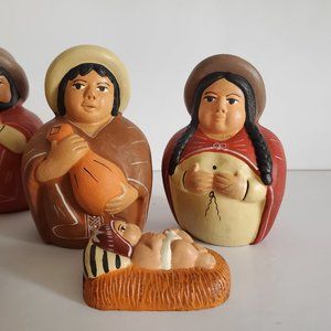 Peruvian Folk Art Baby Jesus Nativity Set Terracotta Clay Handmade Hand Painted