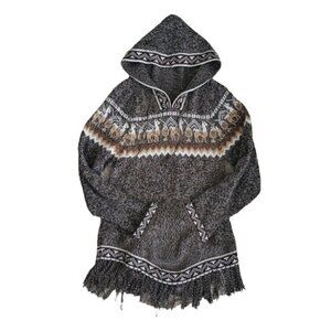Peruvian Handmade Alpaca Hooded Tunic Sweater Ethnic Motifs with Pocket & Fringe Hem