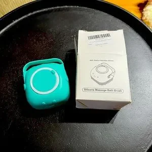 Soft pet bathing brush made of silicone, with compartment for shampoo which is dispensed through the brush; Thorough yet gentle.