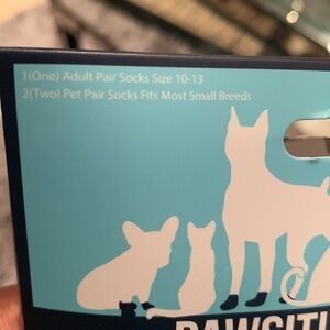 Includes 1 pair of pet parent socks, 2 pairs of pet socks adult pair fits sock size 10-13, pet socks fit most small breeds.