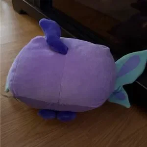 Adorable purple plush toy with wings. Features cute facial details and vibrant colors.