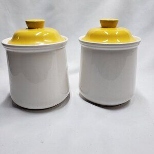 White canister with yellow lids Cute Tigers in lilies graphic Vintage 1989 Made in Japan Set of 2