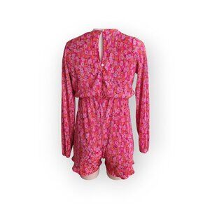 Petal & Pup l/s accordion hot pink v-neck playsuit size S