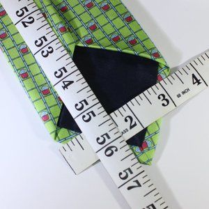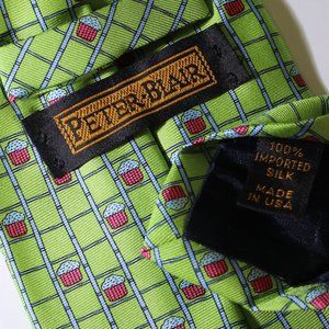 Peter Blair springtime and Easter character tie in excellent pre-owned condition. Green base with colorful cupcake print. 100% Silk. 57" long by 3-1/2" wide. No wrinkles from being left tied, as it seems to be unworn. No stains and no damage to the weave.