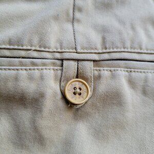 2 back pockets, 1 button, 1 zipper close