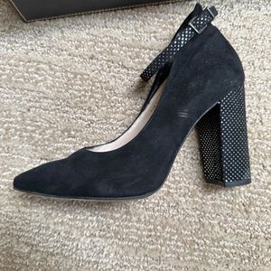 Peter Kaiser Black Suede pumps with shimmery heel and ankle strap