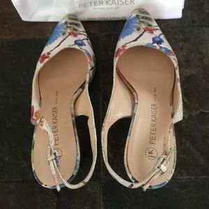 Immaculate condition, beautiful, classy white crackled floral leather Slingback Heels.