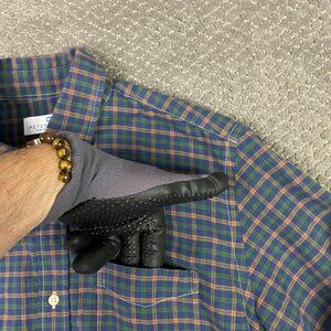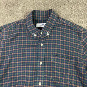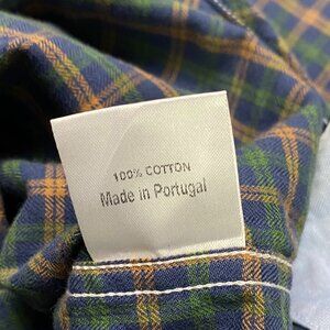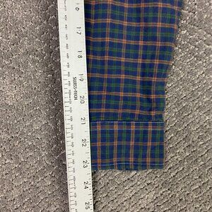Peter Manning Lightweight Flannel Button Down Shirt Mens Size 2 Plaid Blue Green