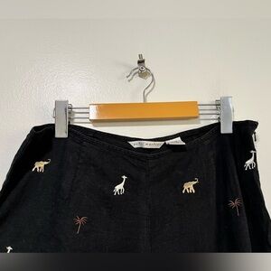 Peter Martin Black Linen Blend Embroidered Animal Pants - Size 12
