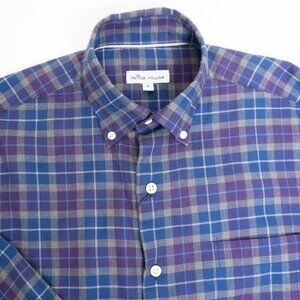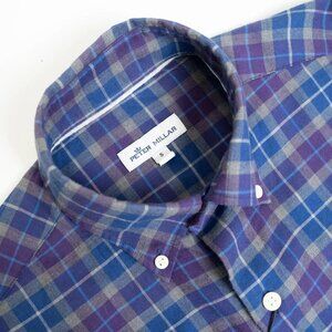 Peter Millar Button Down Ledson Autumn Soft Cotton Sport Shirt Check Blue Purple