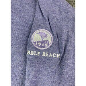 Crafted with the discerning golfer in mind, the Peter Millar Crown Soft Men's V-Neck Sweater is a sophisticated addition to your activewear collection. The luxurious blend of cotton and silk provides an unrivaled level of comfort, breathability, and ease of care. Its timeless purple hue and solid pattern exude elegance, while the asymmetrical hem adds a touch of modern flair to this classic design. Designed to perform, this pullover features an embroidered Pebble Beach Golf Links character that adds an exclusive touch to your attire. The long cap sleeves and tight-knit fabric ensure a snug fit that's perfect for the cooler rounds of fall, spring, and winter. Hand wash care ensures the sweater maintains its quality and charm round after round.