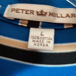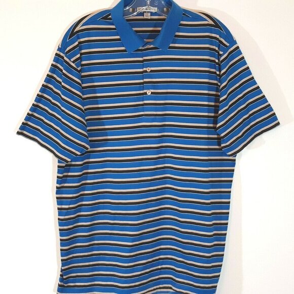 Peter Millar Golf Polo Shirt Beaufort Stripe Lisle Knit Mens Large Blue Striped