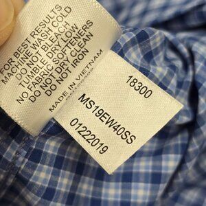 Peter Millar Men Shirt 2XL Blue Plaid Featherweight Button Front Short Sleeve