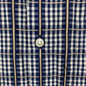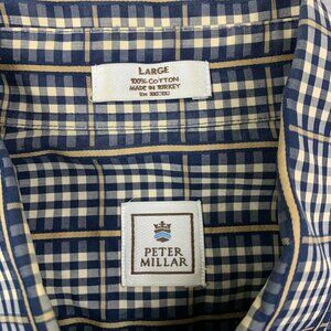 Peter Millar Mens Shirt Large Blue Gold Plaid Button Up Long Sleeve Windowpane