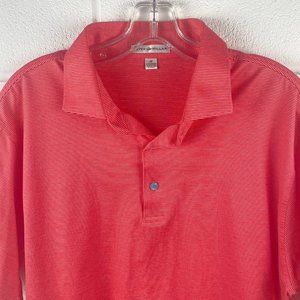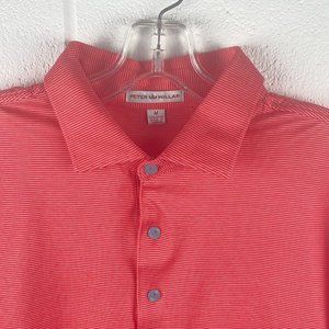 Peter Millar Polo Shirt Men Medium Peach Golf Striped Short Sleeve Cotton Rogers