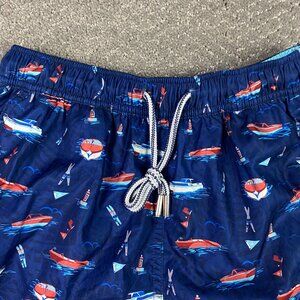 Peter Millar Seaside Collection Swim Trunks Shorts Men's Small Boats Yachts blue