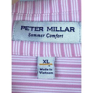Peter Millar Summer Comfort Pink Bloom Heritage Stripe Golf Polo Mens XL Stretch