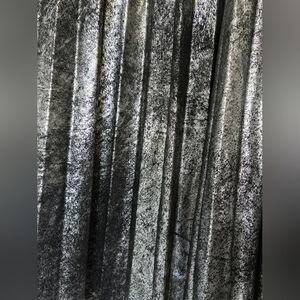 Peter Nygard pleated midi skirt featuring a black and silver metallic finish with a soft shimmer that catches the light beautifully.