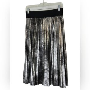 Peter Nygard Metallic Pleated Skirt Silver Black Midi Skirt Shiny Size S