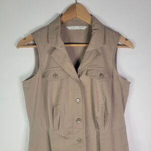 Peter Nygard Sleeveless Tan Button-Up Dress