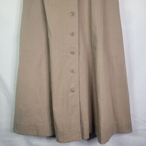 This stylish sleeveless dress features a classic button-up design. Perfect for any occasion, its tan color adds a touch of elegance to your wardrobe. EUC Like New